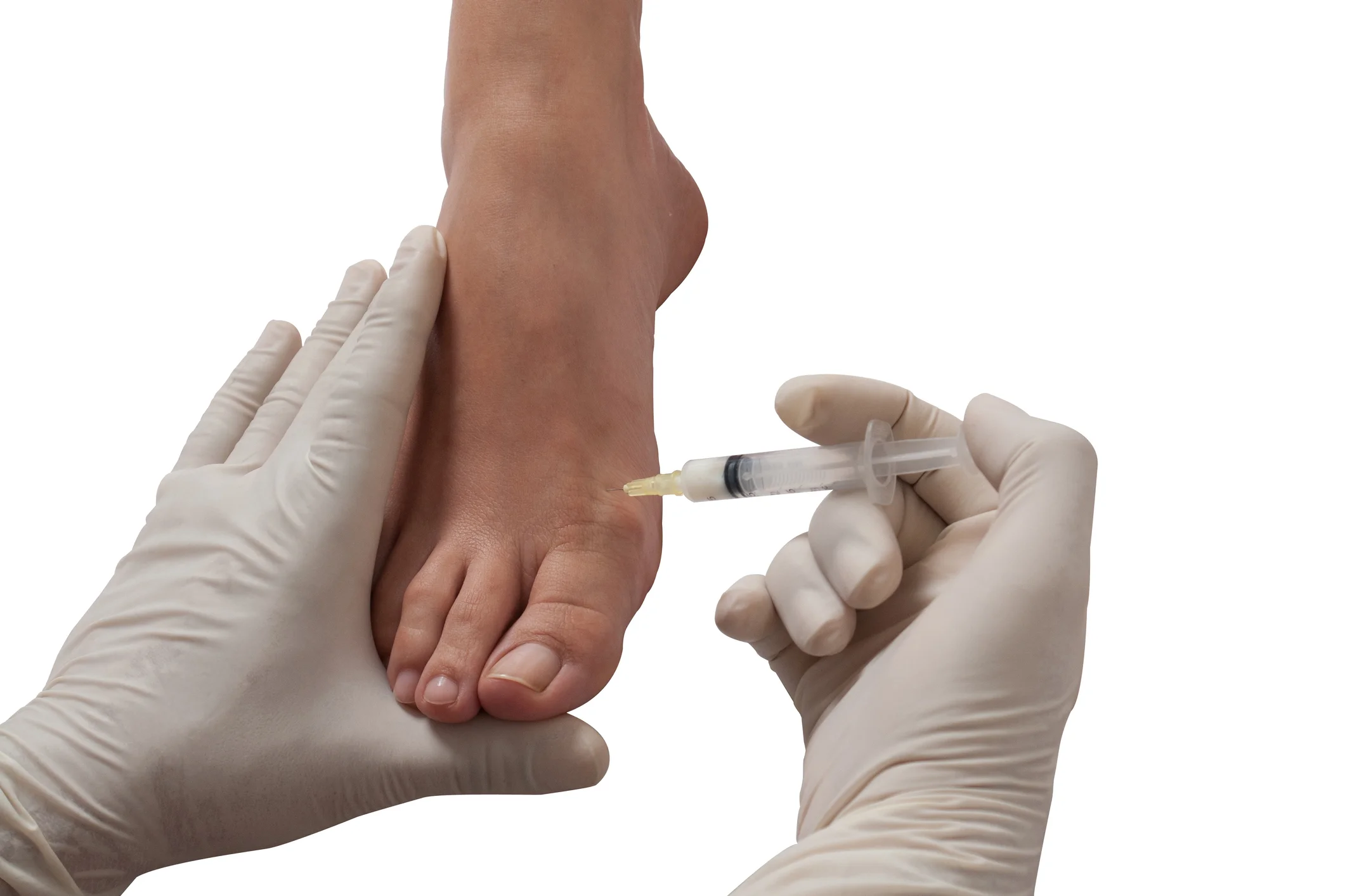 Prolotherapy injections involve the injection of an irritant around the injured site to create a minor inflammatory response, which initiates a healing response to the damaged tissues. A local anaesthetic is mixed with Dextrose (Glucose) and injected at sites of pain. It is hypothesised that prolotherapy injections lead to a response that creates new collagen fibres strengthening ligaments and resolving pain. Prolotherapy is useful in a treatment plan for ankle ligament injuries, ligament pain associated with bunions, osteoarthritic pain at the big toe joint and insertional tibialis posterior tendon pain, among many other conditions. Neural prolotherapy is a form of prolotherapy where a lower concentrated glucose is injected along the course of a symptomatic nerve resulting in pain reduction. Being an injection therapy, this method is not for everyone. However, we have other alternate methods that can help your pain.
